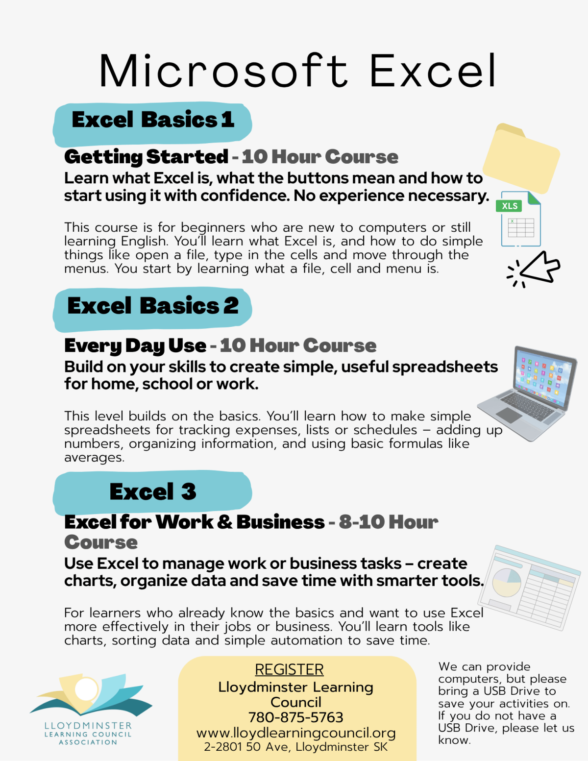 WHERE: Dependent on size of group. Smaller groups are held at the LLCA office. We can provide computer, but if you have a laptop, please bring it. We also require a USB Drive so you can save your activities. *If you do not have a USB Drive, please let us know.*